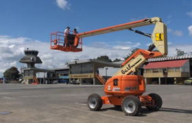 Articulating boom lifts (knuckle booms) are used for reaching up and over machinery, equipment, and other obstacles mounted on floors, and for reaching other elevated positions not easily approached by a straight (telescopic) boom lift. The machine's turntable may be rotated 360 degrees in either direction. The boom can be raised or lowered from vertical to below horizontal, and extended (telescoped) while the work platform remains horizontal and stable. It can be maneuvered forward or backward and steered in any direction by the operator from the work platform, even while the basket is elevated.